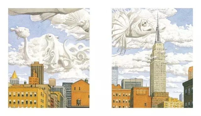 著名畫家大衛·威斯納的無字書,2000年凱迪克銀獎繪本,一個小男孩在帝國大廈上與一朵小白云偶遇。小男孩坐上白云,穿過云山霧海,眼前赫然出現一座天空之城,小男孩意外地開啟了一段驚奇旅程……