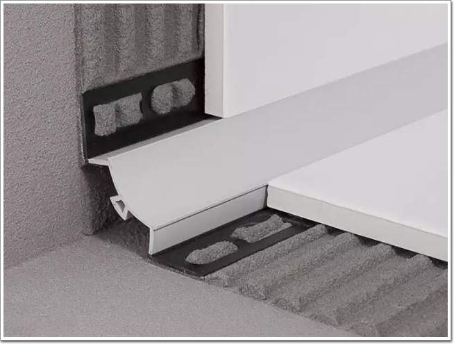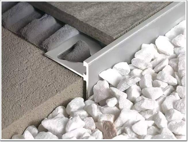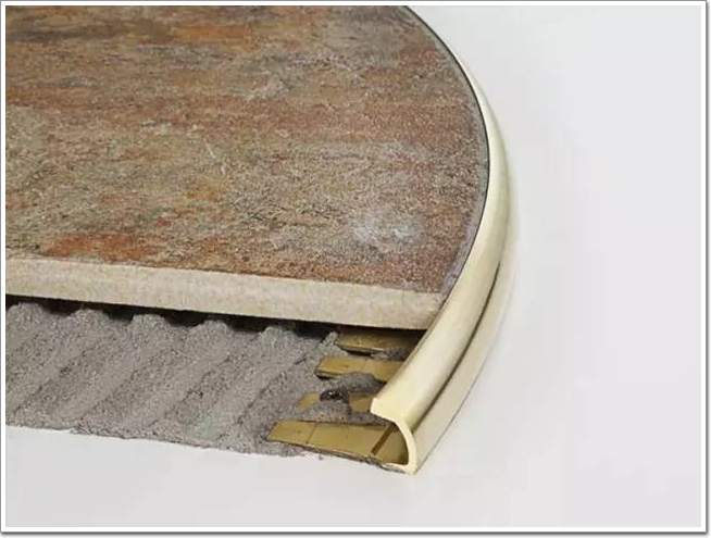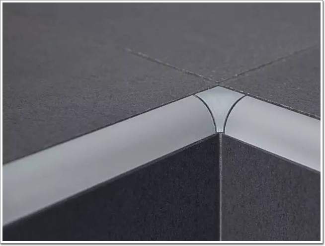 磚在陰角陽角收口時,通常采取45°角對拼的方式。這樣不僅容易崩邊、開裂,還存在一定的安全隱患。而圓潤的金屬收邊條不僅增強了裝飾效果,也一并消除了這些問題。
