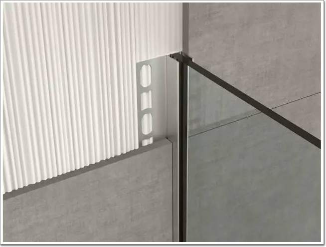 在衛生間墻地磚的鋪貼上,我們通常采取“墻壓地”的做法,因為縫隙小,美觀的同時防水(詞條“防水”由行業大百科提供)效果也好。而收邊條不僅兼備這些優點,也讓空間品質感瞬間得以提升。