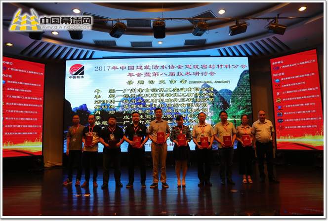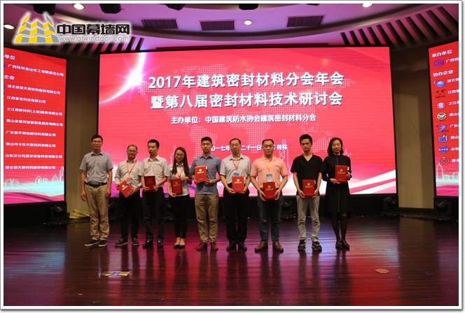 同時,本次會議還對積極協(xié)辦、支持2017年中國建筑防水協(xié)會建筑密封材料分會暨第八屆國際密封材料技術研討會的企業(yè)頒發(fā)榮譽證書。協(xié)辦企業(yè)名單:湖北新藍天新材料股份有限公司、江西奮發(fā)科技有限公司、之江高新材料(上海)股份有限公司、佛山金銀河智能裝備股份有限公司、廣東恩平燕怡新材料有限公司、佛山市卡樂爾新材料有限公司、山東沃仕瑪真空設備科技有限公司、湖北回天新材料股份有限公司。