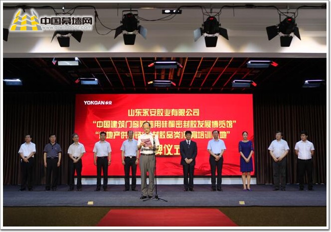 2017年6月24日, “中國(guó)建筑門(mén)窗幕墻用硅酮密封膠發(fā)展博覽館” 及“房地產(chǎn)供應(yīng)鏈(密封膠品類)教育培訓(xùn)基地”授牌儀式在山東永安膠業(yè)有限公司新大樓隆重舉行。