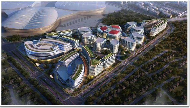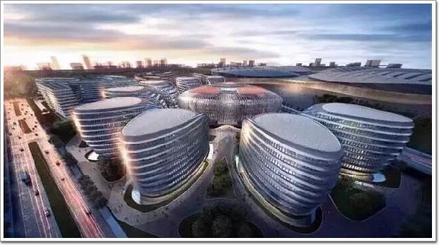咱們先來說說虹橋世界中心吧,橋世界中心作為國家會展中心的高端商務配套,位于國家會展中心南廣場正對面,同時基地緊鄰虹橋機場與虹橋高鐵,作為上海的門戶,飛機的起降都能俯瞰整個建筑群體,虹橋世界中心是上海市世界級建筑文化新地標,整個虹橋中心以呼應國展中心”四葉草”為出發點,神從形似,各個建筑單體以“花心、花瓣、綠葉”的形式有機排列組合,組成“向陽花”的形態,與之軸心對位,構成區域內最具辨識性的建筑群。