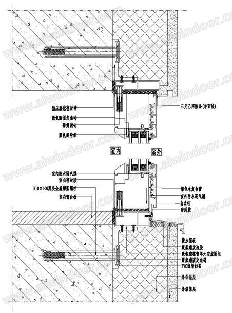 圖七、圖八、圖九分別是鋁包木窗、鋁合金窗、塑鋼窗的干法無熱橋安裝方式,