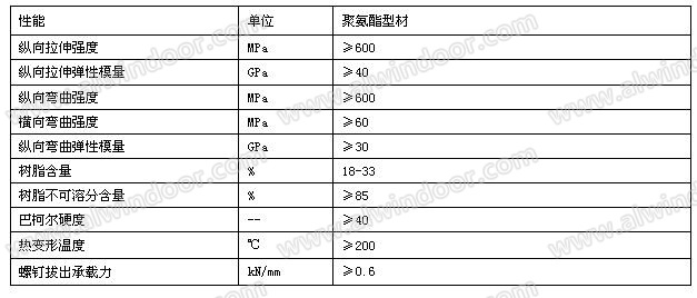 新修訂的JC/T941《門窗用玻璃纖維增強(qiáng)塑料拉擠型材》規(guī)定物理力學(xué)性能如下表: