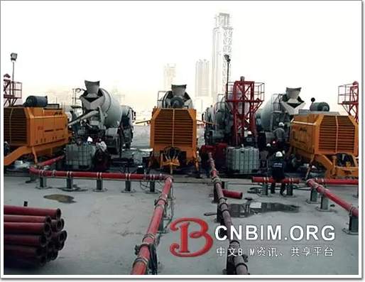 在“迪拜塔”工地上,有4臺巨大的混凝土攪拌機,能夠快速地制作混凝土。