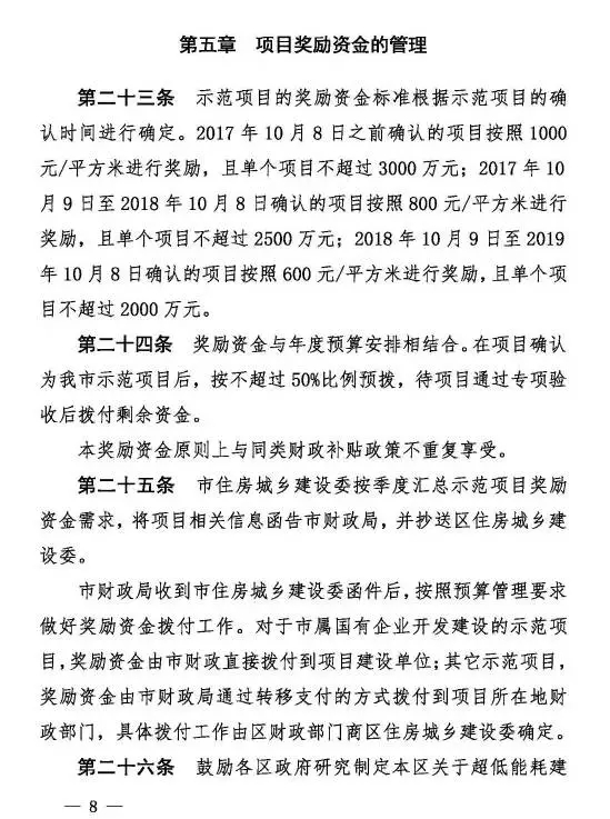 北京市發(fā)布超低能耗建筑示范工程項(xiàng)目及獎(jiǎng)勵(lì)細(xì)則,建造被動房的而且希望獲得資金獎(jiǎng)勵(lì)的朋友請趕緊看過來。2017年10月8日之前確認(rèn)的項(xiàng)目按照1000元/平方米進(jìn)行獎(jiǎng)勵(lì),且單個(gè)項(xiàng)目不超過3000萬元;2017年10月9日至2018年10月8日確認(rèn)的項(xiàng)目按照800元/平方米進(jìn)行獎(jiǎng)勵(lì),且單個(gè)項(xiàng)目不超過2500萬元;2018年10月9日至2019年10月8日確認(rèn)的項(xiàng)目按照600元/平方米進(jìn)行獎(jiǎng)勵(lì),且單個(gè)項(xiàng)目不超過2000萬元。