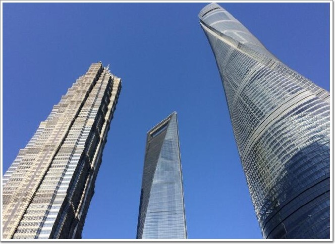 在上海中心大廈仰望三個摩天大樓,太高了,仰的脖子不舒服。