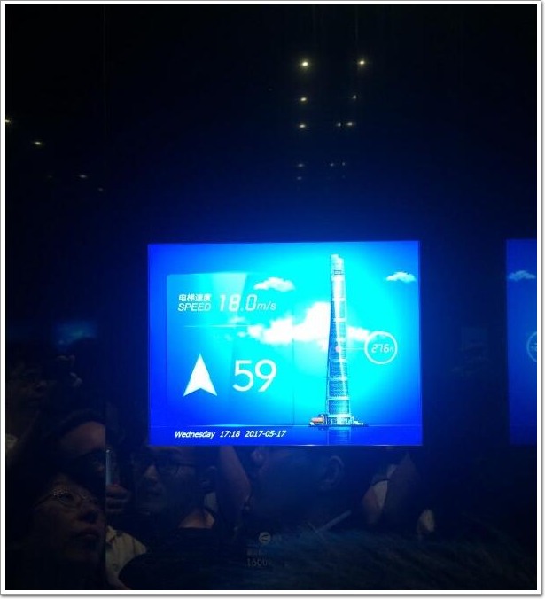 迄今為止世界最快電梯,電梯速度18米每秒,55秒到達,除有點耳鳴外沒有其他不適。在進入電梯之前,工作人員會提醒游客,加入在電梯升降過程中耳朵有耳鳴現象的話,可以試著做吞咽動作,以緩解不適。