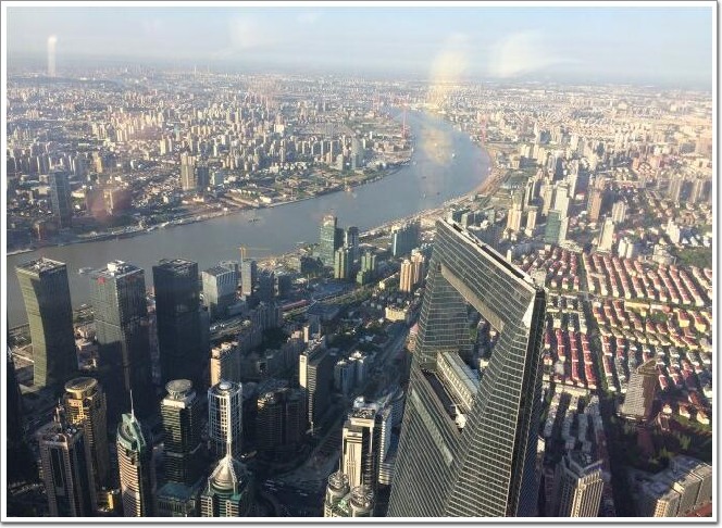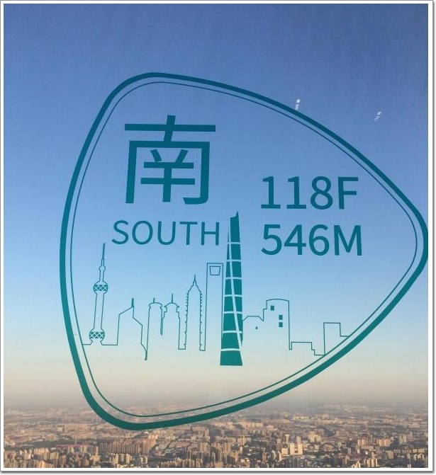 上海中心大廈觀光廳,可以360° 無死角的俯瞰整個上海,這是方向東,118層,高度546米。