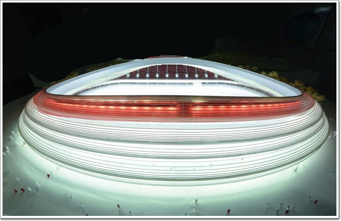 速滑館設計整體為橢圓形,平面尺寸為220M*160M,“馬鞍”造型主要與賽道要求有關,國際滑聯規定的標準400米速滑賽道、人工制冰的冰面以及標準速滑賽道兩端各需要有180度弧等相關要求,在場館設計方案中均得到很好落實。在建筑外圍將有22條銀白色玻璃幕墻絲帶,一圈圈如銀河如冰鏈,“冰絲帶”的控制高度為55米,每圈長度600米,上下疊合,且每圈玻璃絲帶都是曲面玻璃,內裝LED燈光,形成獨特的冰上體育建筑外觀,22條“冰絲帶”看上去交織成繭,象征著2022年奧運之星將從此破繭而出,寓意非凡。