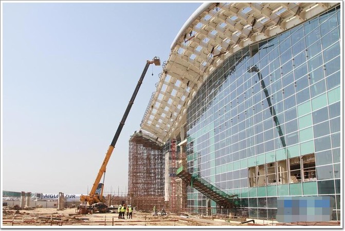 項目位于阿爾及爾首都機場——布邁丁國際機場西側,占地面積65萬平米,建筑面積20萬平米,含有新航站樓和能源中心2個單體,鋼結構用鋼約1.3萬噸。該項工程由中建八局和中建股份阿爾及利亞公司聯合承建,中建八局總承包公司承擔了新航站樓土建結構施工、停機坪、高架及停車場等工程項目的建設。