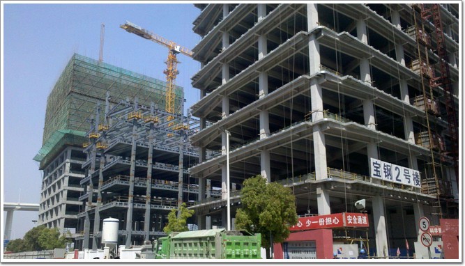 上海世博地塊寶鋼總部基地項目由一幢高層主樓、兩幢副塔樓(詞條“塔樓”由行業(yè)大百科提供)組成,總建筑面積144132平方米,其中主樓高120米,地下四層、地上24層,使用功能為辦公寫字樓,其次,兩幢副樓高度為30米,共5層,做為商業(yè)娛樂等場所。本工程具有扭轉不規(guī)則、樓板大面積缺失、局部轉換和18米高躍層柱等多項不規(guī)則,屬于超限高層建筑。項目為全鋼結構系統(tǒng),采用矩形鋼管混凝土框架-鋼筋混凝土(詞條“鋼筋混凝土”由行業(yè)大百科提供)核心筒結構體系,總用鋼量近萬噸,主要采用寶鋼生產的高等級建筑用鋼。