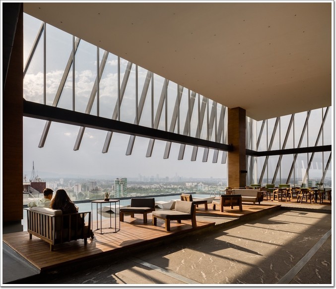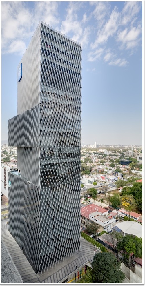 不僅如此,整棟建筑還使用可以高度減低日光直射的雙層玻璃窗。在立面上干凈且重復的框架線條為建筑帶來別具一格且永不過時的特點,外表皮的鋁制結構配合玻璃幕墻,從而加強了它的代表性和獨特性。因此,這也是墨西哥西部地區第一個接受綠色建筑評估體系(LEED)認證的建筑。