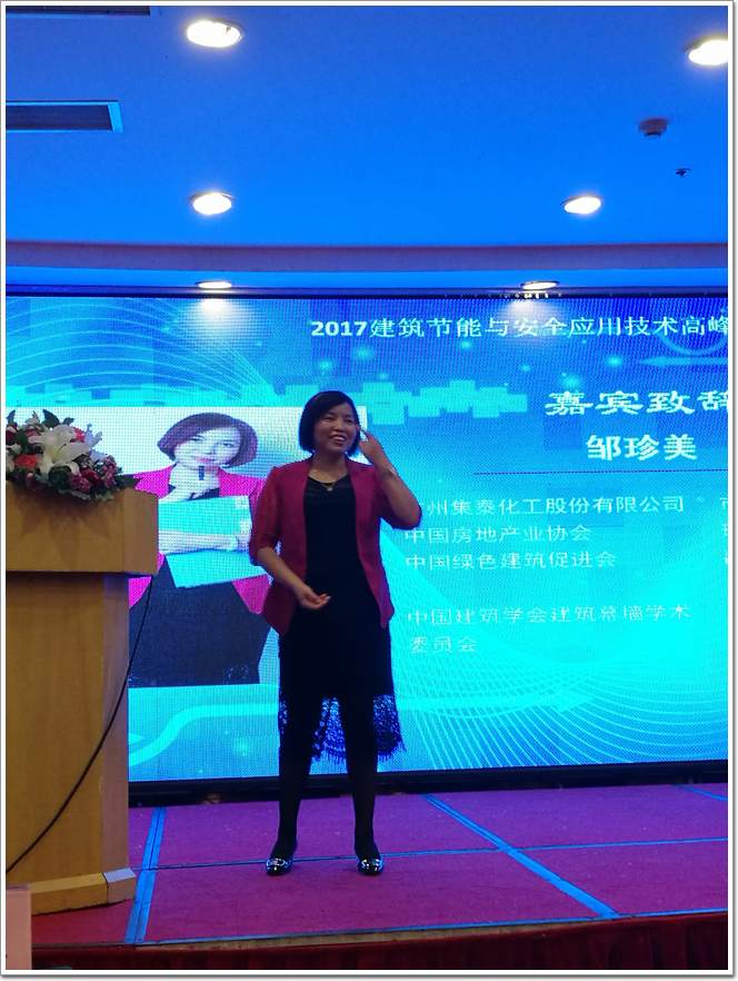 集泰股份市場總監鄒珍美女士在本次活動中致辭,她提到綠色建筑與綠色經濟,企業轉型與創新發展是現在的發展趨勢,從中央到地方都在積極推進和引導,未來建筑業的發展將與綠色經濟息息相關,只有把握趨勢,認清形勢,認真規劃和實戰,未雨綢繆,才能在激烈的市場競爭中占據主動,綠色科技發展轉型創新升級將成為企業未來致勝的根本。