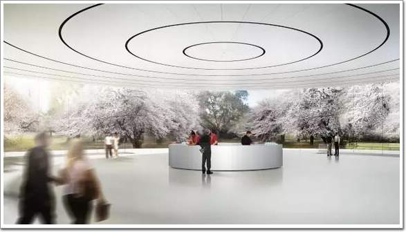 這個劇院對蘋果公司來說地位非同一般,所以自然要在整個總部范圍內的最高點,四周綠樹環繞,很有生機。