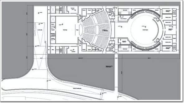 可以看出來,喬布斯禮堂除了地面上的圓環建筑以外,還有地下空間。負一層為展示區、支持區和臨時庫房。最底層則分布著舞臺和禮堂等,今天發布會就是在這個禮堂舉行的。