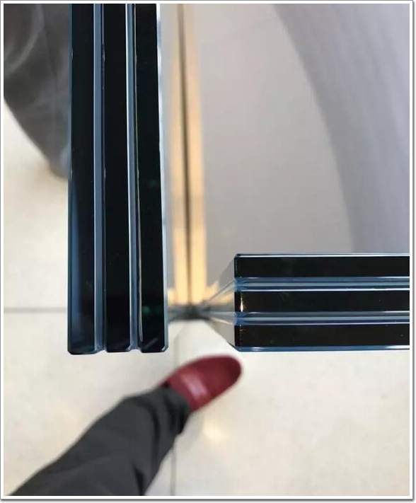 周圍的玻璃欄桿有三層,看起來十分結實,轉角處沒有粘接而是留縫處理 ▼