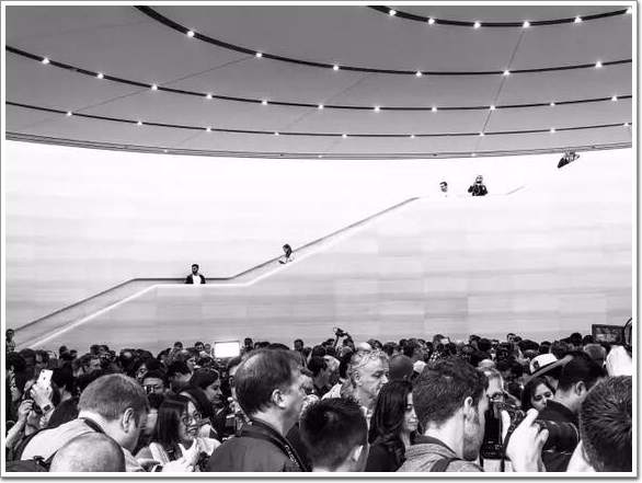 喬布斯劇院的主禮堂能容納 1000 人,比近幾年的發布會會場規模有所下降,但可以說會場質量是近幾年來最高的,畢竟是蘋果公司親生的會場。
