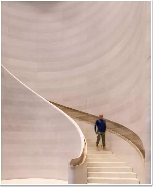 如果你比較追求健康,走走樓梯就可以了。樓梯的扶手是內凹在石材墻面里的,有一種別樣溫潤的質感,非常舒適 ▼
