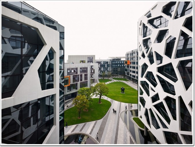 阿里總部借鑒了中東的建筑特色,樓的底部是空的,加速空氣流通。而中國式的冰花紋紗窗這是整個古典園林最突出的遮陽屏。設計結合了功能的同時最大限度地發揮其對人口的健康,福祉和生產力的貢獻,以盡量減少對校園的環境影響。