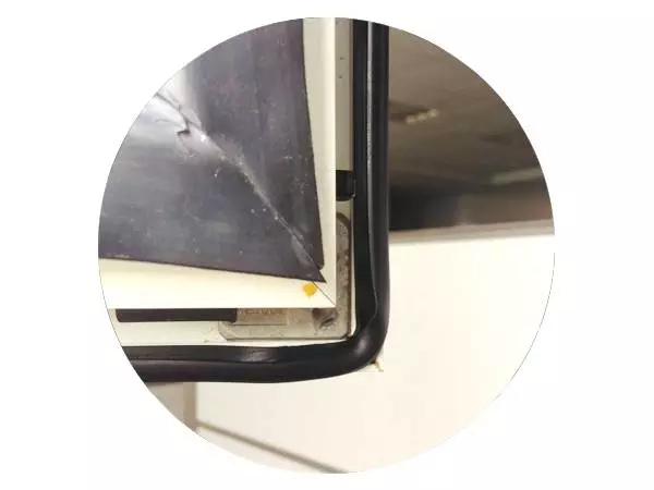 90°轉(zhuǎn)角處的膠條容易脫落。