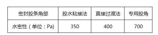 不同角部膠條密封性對(duì)比↑