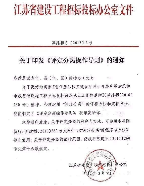 近日,江蘇省建設工程招標投標辦公室印發文件,房建和市政工程招投標將實行“評定分離”: