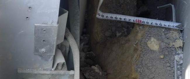 (9)防雷防火節點不符合設計要求。防火要求在層間位置由1.5mm鍍鋅鋼板承托至少100mm的巖棉板(詞條“巖棉板”由行業大百科提供),檢查中發現的典型問題見圖12。