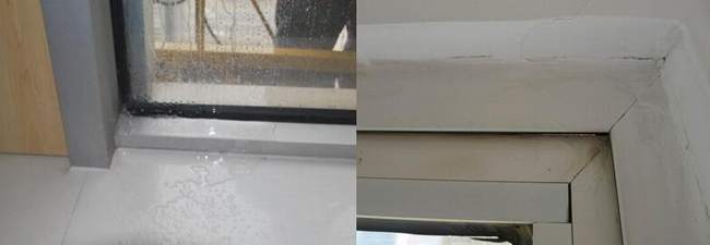 a)幕墻漏水 b)門窗與鋁板幕墻接口處漏水