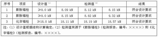 此外,部分采用后置埋件的工程還應對提供的后置埋件試驗報告審核。典型的后置錨栓抗拉檢測值與設計值檢查案例見表2。