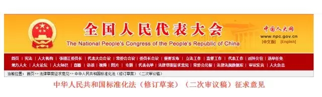 2017年28日-9月1日召開的第十二屆全國人大常委會第二十九次會議對標準化法(修訂草案二次審議稿)進行了審議。9月4日,中國人大網全文公開了標準化法(修訂草案二次審議稿),向社會公開征求意見。