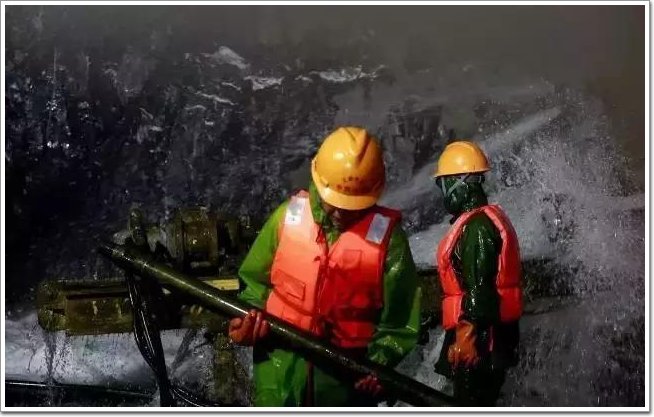 在2012年3月28日,隧道出現巖溶涌水,每天涌水量達2萬多立方,水溫高達37℃,洞內溫度高達40℃,濕度達到95%。為了保證施工作業,四川路橋的施工者們專門將一車一車的冰塊拉到施工區域以此降溫,同時增加通風設備,降低洞內濕度。
