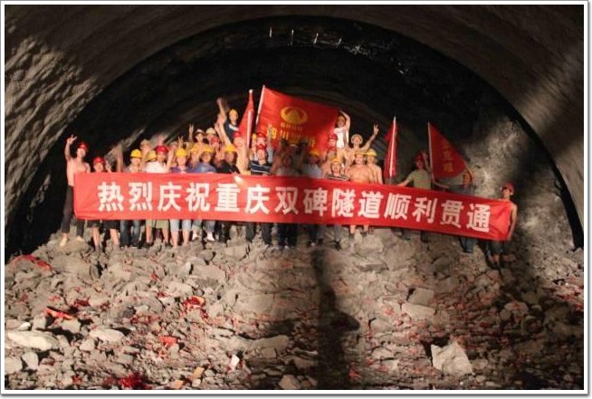 全長4373米的重慶雙碑隧道,2010年開工,為當時國內最長雙向六車道市政隧道。雙碑隧道穿越的中梁地表水庫、泉眼、魚塘密布,地下水資源豐富,隧道內溫度很高。