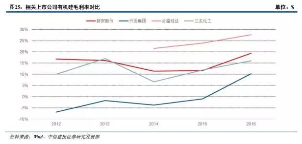 3)鑒于下游有機硅深加工產品具備更高的附加值,有能力的企業選擇向深加工下游產品進一步延伸,從而獲得更高的毛利率,主要代表為合盛硅業和新安股份,以及近期正在向下游不斷延伸的興發集團。