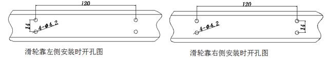 在扇型材上根據滑輪的固定孔位開好孔,將滑輪水平放入型材腔體,滑輪安裝位置注意避開角碼位置。選擇ST4.2十字沉頭自攻螺釘,將滑輪固定在型材上。安裝完畢后,請檢查滑輪運轉是否順暢。將窗扇放入框上,用內六角扳手調節滑輪,以滿足窗扇實際工程中的搭接需求。