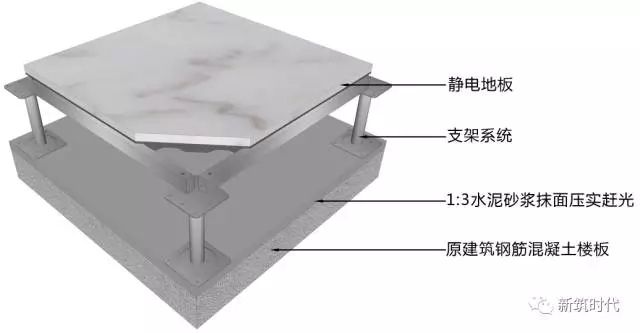 靜電地板安裝三維示意圖