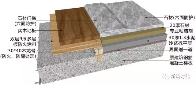 木地板+門檻石+地磚工藝