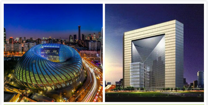 鳳凰傳媒中心(左)北京新保利大廈(右)