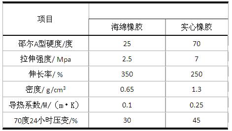 表1 海綿橡膠和實心橡膠性能對比