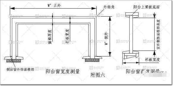 非常規陽臺的測量較為繁瑣,具體測量部位及尺寸標注見附圖七。