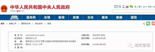 2018年5月14日,國務(wù)院辦公廳正式頒布《國務(wù)院辦公廳關(guān)于開展工程建設(shè)項(xiàng)目審批制度改革試點(diǎn)的通知》(國辦發(fā)〔2018〕33號),《通知》提出2018年試點(diǎn)地區(qū)建成工程建設(shè)項(xiàng)目審批制度框架和管理系統(tǒng),按照規(guī)定的流程,審批時間壓減一半以上,由目前平均200多個工作日壓減至120個工作日。將大大精簡審批環(huán)節(jié),主要包括: