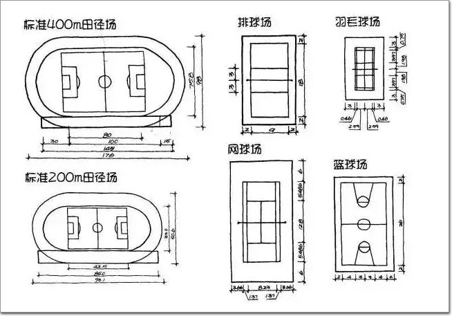 (標準田徑場需要設置看臺,看臺應設置在西側,防西曬)
