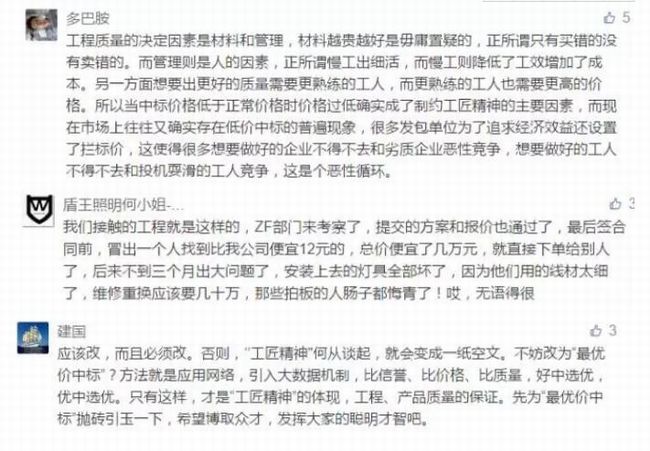 “最低價(jià)中標(biāo)”在人民日?qǐng)?bào)牽頭下成眾矢之的,建設(shè)領(lǐng)域更是深受其痛,廣大網(wǎng)友紛紛吐言。