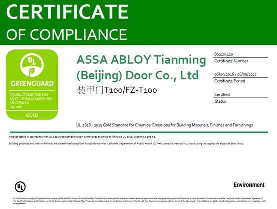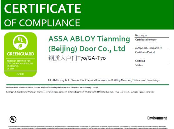 5. 作為全球開門解決方案的領先者,亞薩合萊天明的多種產品通過了公安部消防產品合格評定中心的型式認可認證,防盜安全門檢測以及美國UL、英國BS、俄羅斯ROCT等標準的檢測,可否談談在產品保持高標準且不斷創新的同時堅持綠色可持續發展,使亞薩合萊的防火門始終致力于在建材行業的領先地位?