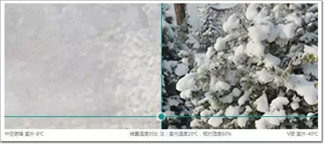 真空玻璃機理上杜絕了內結露現象。較中空玻璃因內外溫差導致的凝露問題,內腔處于高真空狀態的V玻杜絕了內結露現象。同時,出色的隔熱保溫能力,使得即使室外溫度降到零下70 ℃,玻璃內表面也不會出現結露。