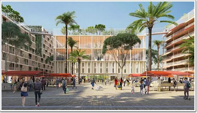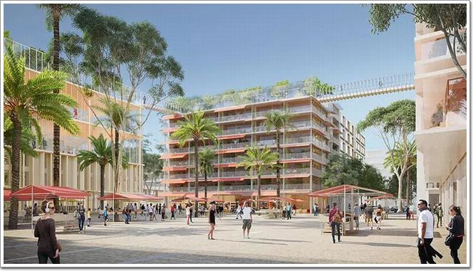 現有的方案中,Joia Méridia 由三個主要的區域組成:以藤本壯介和 Cino Zucchi 的塔樓 R+17 為主,環繞著一系列高樓的大都會廣場;代表著尼斯傳統的 Meridia 廣場周邊是較低矮的建筑群,有熱鬧的商店空間和菜園;最后,還有一個坐落于法國建筑師 Laisné Roussel 設計的健康中心內部的庭院,位于它附近的是咖啡館、展館、體育館和酒店。