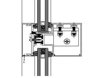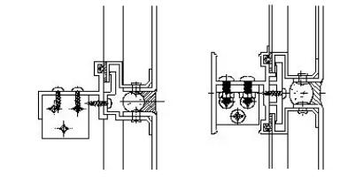 同結(jié)構(gòu)2相比,橫框可以做得更小(帶翻窗時除外),橫豎框連接采用插芯及彈簧機構(gòu),形式新穎、安裝簡潔方便,但鉆孔時須做胎具。