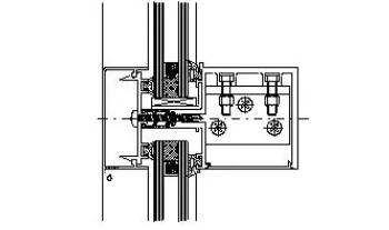 此結(jié)構(gòu)為研究所開發(fā)的KJ401型明框玻璃幕墻,同結(jié)構(gòu)1相比有兩個主要特點:一是橫豎框采用柱銷式連接,二是外露扣板有自潔功能。