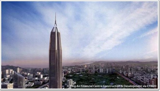 平安國際金融中心最初的目標高度是660米,然而,由于飛機航路問題,塔尖的高度不得不減少約60米。最后,它以約600米的天際線,刷新了深圳第一高樓的紀錄。