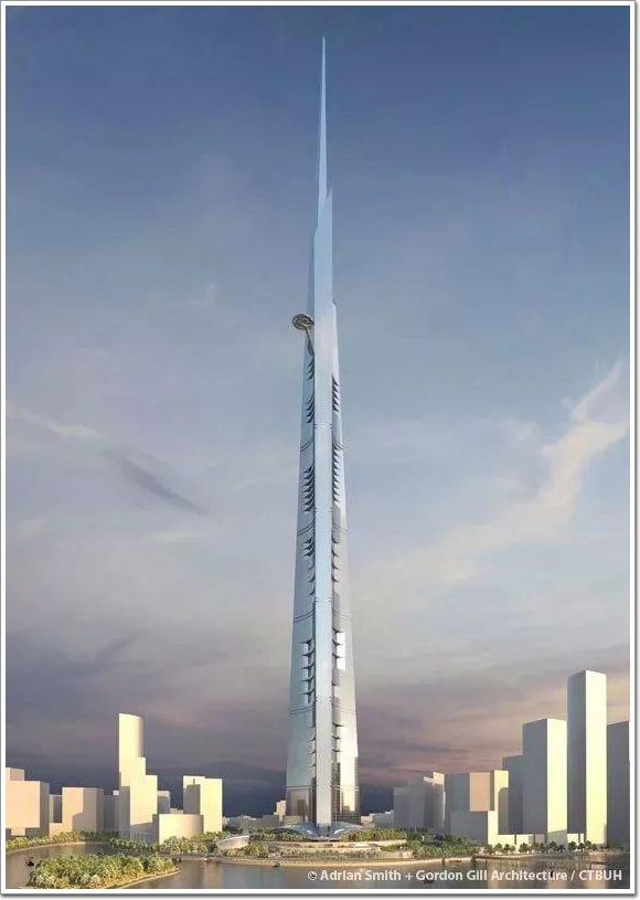 目前正在建設中的沙特阿拉伯吉達塔(Jeddah Tower)是人類歷史上第一座超過1000m的摩天大樓,預計于2020年建成。